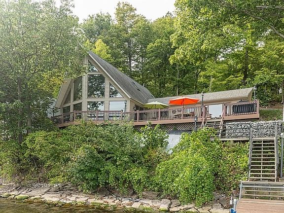 LIFE ON THE LAKE - Shimmering water, tranquil setting, the gentle sounds of the waves lapping the shoreline, and spectacular views of beautiful Henderson Harbor with access to Lake Ontario. This showcase property is situated on 150 ft of pristine waterfront with a 40 foot Galvanized Steel electric lift dock platform to provide superb access to deep water docking. The house offers amenities galore such as an expansive living room with LP fireplace and glass wrapped two story floor to ceiling windows for magnificent waterfront views. Large deck and patio area. 3 to 4 bedrooms, 2-baths, Sun filled newer kitchen and dining area. Unmatched quality and thoughtfully planned out to provide the ultimate lifestyle. Call today to make an appointment to view this extraordinary property that is proudly offered to QUALIFIED BUYERS.