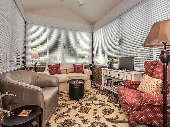 Well-appointed and upgraded at end of unit with private side and backyards! Full brick! Only shared wall is garage wall! Like new carpet, moulding t/o, plantation shutters, solar tubes for tons of natural light! Lg sunroom (not inc in HLA) with 2' faux w 1615 Sq Ft