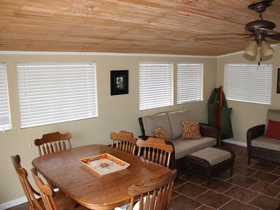 Adorable and immaculate lake home. This house was completely remodeled in 2010 and features concrete countertops in the kitchen, ceramic tile everywhere except bedrooms. Stainless steel appliances, new windows and doors. Brand new deck wraps around the home and provides great outdoor entertainment space. Single Slip boat dock with beach area. dock has had some reworking. Good water depth and only 200' from main body.