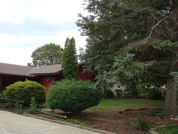 Fireplace, great landscaping with lots of trees and shrubs, outbuilding for storage. Kitchen has lots of wood cabinets and counterspace. The large backyard has a covered flagstone patio.