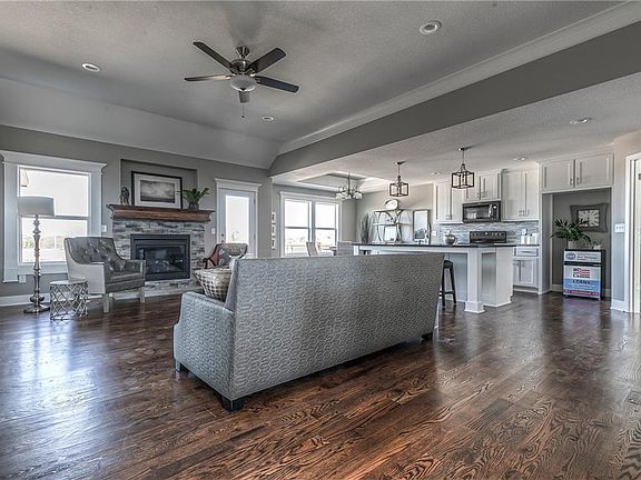 The Beautiful "Austin" Ranch floor plan will wow you with quality, detail and luxurious finishes! Real hardwood floors, oversized island with quartz, pantry, built ins, trim finishes, large primary walk in closet, tub and shower. Huge walk out basement that walks out to an amazing back yard that gives plenty of room for entertaining or just enjoying the water view! Come see your new home!! Ready January 2024 for move in! Grayhawk at Prairie Gardens will soon have a pool added to the community! Close to all the schools, library and recently added parks! Within minutes jump unto highway to access everything in Kansas City!