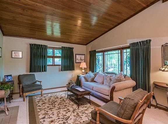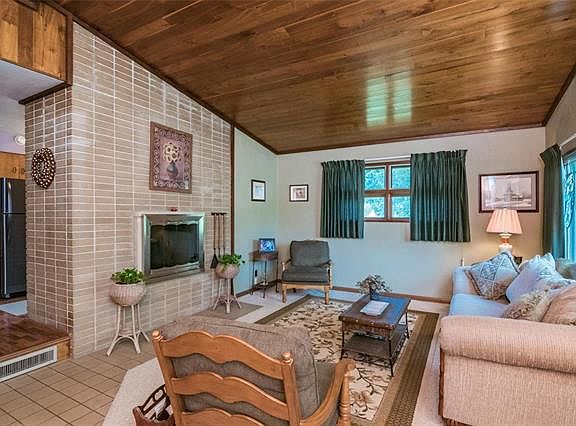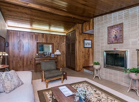 TONS OF CHARACTER & MID CENTURY CHARM! Lovely living room boasts floor to ceiling brick fireplace, wood cathedral ceiling, and wood wall with accent lighting. Galley style kitchen with gas cook top, built in oven, tile counters, back splash, and new refrigerator. Formal dining room with access to covered porch and patio area. Master bedroom has its own private 3/4 bath. All bedroom closets are cedar lined. Finished Lower level includes spacious family room with 2nd brick fireplace, wet bar, full kitchen, 3/4 bath, office, laundry room plus workshop and has walkout to large yard. Centrally located with easy access to shopping and dining. I love this house and I'm sure you will too!