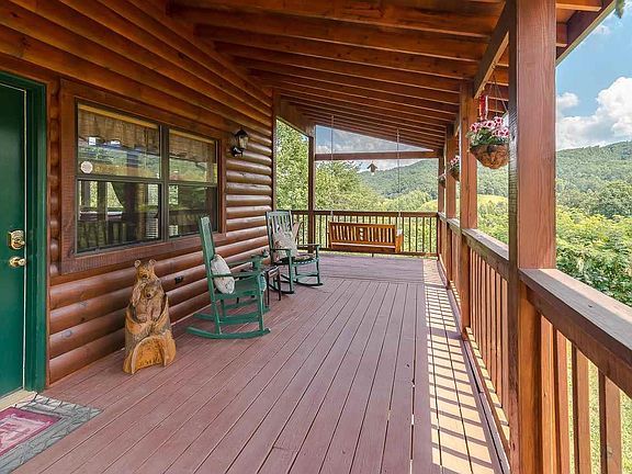 Beautifully built 2 bedroom, 2 bath cabin with a gorgeous setting and a nice view! On a private lot with a large yard. Features include an all wood interior with an open floor plan, 25 foot cathedral ceiling and a wall of windows (which both make it feel very spacious inside), whirlpool tub, and a beautiful stack stone fireplace in the living room. The basement/ garage is full size and perfect for extra storage, and could very easily be finished for more living space. The garage door is insulated so the basement remains cool in the summer and warm in the winter. In an excellent location. Convenient to Pigeon Forge, Sevierville, as well as Gatlinburg. Comes furnished! This home is perfect for permanent residence, 2nd home, or overnight rental. Offered at an excellent price!