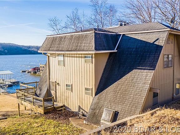 This 2.5 story contemporary home on a great lot! Features fireplaces on all 3 levels - in the master bedroom, living room and family room. Open floor plan with wall of windows on the main level shows off the gorgeous lake view. Main level offers 2 guest bedrooms, family room and full bath. Upstairs offers master bedroom, bathroom and guest room. Could be updated to master suite with private bath and office. Lower level boasts an open floor plan with kitchen, spacious family room, laundry room and patio to lake. The home needs updated flooring and deck repair on main level. Offers large concrete 2 well dock w/swim platform, boat and wave runner lifts. Great value for investment, or family home.