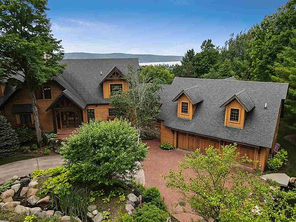 This one of a kind Town & Country Log home is a virtual oasis of tranquility located in the Mountain Club development at Boyne Mountain Resort. Pulling into the driveway you'll notice the meticulously landscaped entrance and water features and when stepping into the home the panoramic view of Deer Lake will immediately put your mind at ease. The home is being sold with additional lot below to insure you will always have great views. Beautiful stone double-sided wood fireplace in living and master suite will provide a warm glow on those frosty evenings. Kitchen features Sub-Zero refrigerator with two Sub-Zero freezer drawers and Dacor range top and double ovens. A large pantry and laundry area with sink are just around the corner. The walk-out lower level has in- floor heat, a second full kitchen, large living area with 2 bedrooms and full bath. And loads of storage! Over the garage is a wonderful en-suite with balcony and large full bath with tiled walk-in shower, and a kitchenette. What a perfect spot for quiet master area or mother-in-law suite! The heated driveway makes winter life easy! Add the 3 car garage, with large sink station and loads of storage space. These are just a few of the high-end features of this property. Start living your Best Life today!