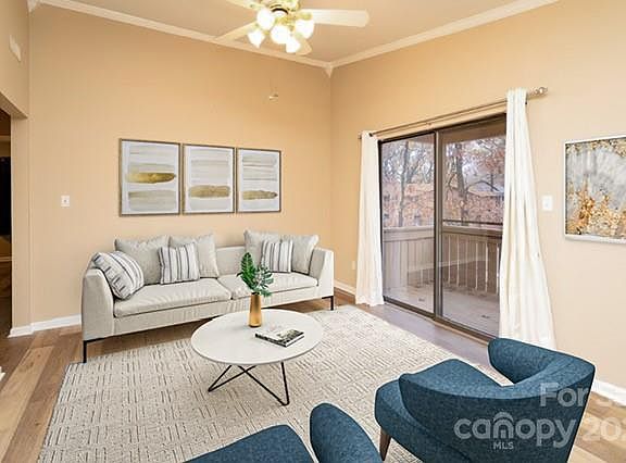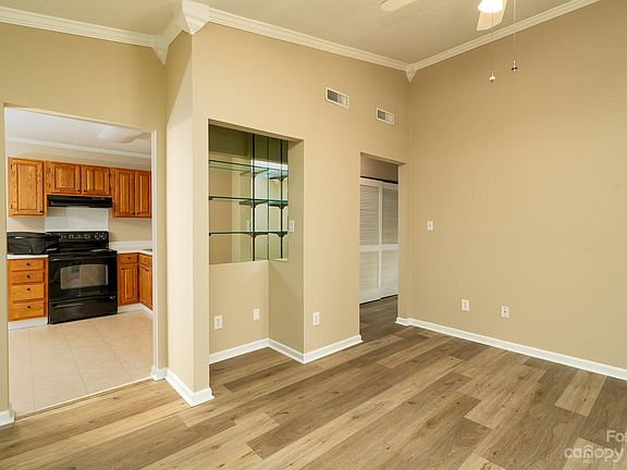 Wonderful, one level, end unit Condo with Open Floor Plan and fresh paint. Second floor unit with lots of natural light. Great Room with vaulted ceiling! Designer LTV flooring throughout, with sparkling kitchen, all appliances convey including the refrigerator. Large bedrooms and covered treehouse like deck/balcony. Newer HVAC. This condo is as neat as a pin! Close to everything....dining, schools, I 77, and shopping. Have a new home for the Holidays!