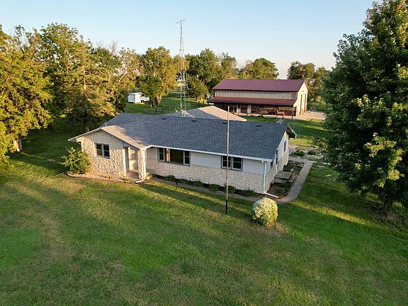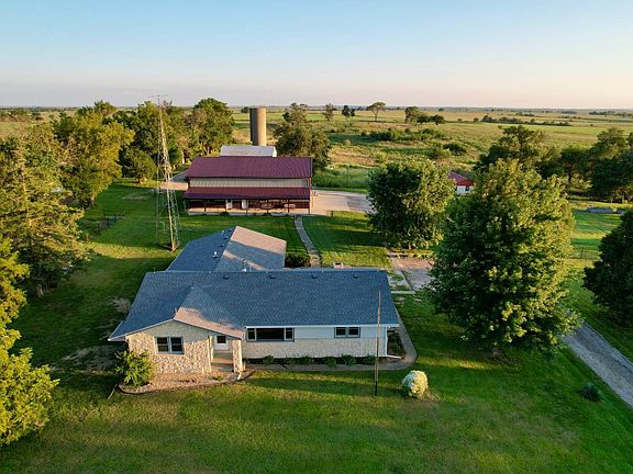Located in a beautiful country setting between Madison and Olpe sits this highly attractive and well-maintained 30-acre property with large home and nearly new secondary shop with living quarters. The property provides all the joys of country living while being located within 3-miles of 99 HWY and within an easy 20-minute drive of Emporia. The past owners have taken wonderful care of the property, giving you an excellent opportunity to own a beautiful home in an attractive area where properties of this caliber rarely hit the open market. The property features a beautiful large ranch-style home that is set up very well for a large family and features a nice open floor plan for hosting gatherings with friends and family. With nearly 3700sf of finished living space, 6 bedrooms and 3.5 bathrooms, and two living rooms, the home is laid out very attractively. The main floor of the home features a large open kitchen with enough space to include a table or breakfast nook, a dining room and living room that are open to one another for hosting large diners and parties, and four bedrooms including a large master sweet. The master sweet features a large bedroom, a large bathroom with both a shower and tub, and a very large walk-in closet. The main floor additionally features a second large full bathroom, a small half bath, and a large laundry room with adequate room to accommodate a large deep freeze. The basement of the home is nice and cozy and features two bedrooms, a full bathroom, and a large second living room for kids to play in or for additional space when hosting friends. The home has an attractive open floor plan, tons of living space and storage, and is waiting for the right family to call it home! As you move south from the house you enter a nice large patio area for grilling outside that includes a nice large firepit for those cool fall evenings. An attractive lawn south of the house leads you to the crown jewel of the property, a recently built large attractive shop with secondary living quarters. The shop includes a large full-length covered porch that faces the house and patio area providing a wonderful location for friends and family to gather outside for holidays and weekend get-togethers. The shop totals 2400sf in size and features nearly 1000sf of additional heated and cooled finished living space with a kitchenette and full bathroom being a wonderful resource for hosting guests or for a source of income as an Air B&B/VRBO nightly rental. The building is fully spray foam insulated with water and electricity and in addition to the finished living space includes a two car garage as well as a large open 16' tall shop with two large overhead 14' doors and 220 power. The building is extremely well designed with it being obvious that no expense was spared in its construction. For those who love spending time outdoors the property is truly a joy to be on! Located just east of the house is a nice large pond that provides water for livestock as well as wonderful location for fishing with the kids and grandkids. For cattle and horse lovers the property features fenced pasture and meadow acreages for your cattle and horses to graze throughout the year. The property additionally features a small set of pens beside a cinder block building (prior milk parlor) for those with kids or grandkids with 4-H animals or for those looking to fatten out their own cattle or hogs. For the hunter, deer pass regularly through the property offering hunting opportunities. The hay meadow on the property features class II and III soils that could be broke to additionally add a deer or dove plot to the tract if desired. Overall, this is an exceptional property that has been very well cared for and is located in a highly attractive area between Olpe and Madison. With nearly 5000sf of finished living space between the house and secondary living quarters, a very well built shop for all your projects, and beautiful land for having fun and raising live