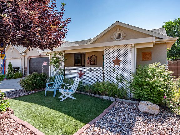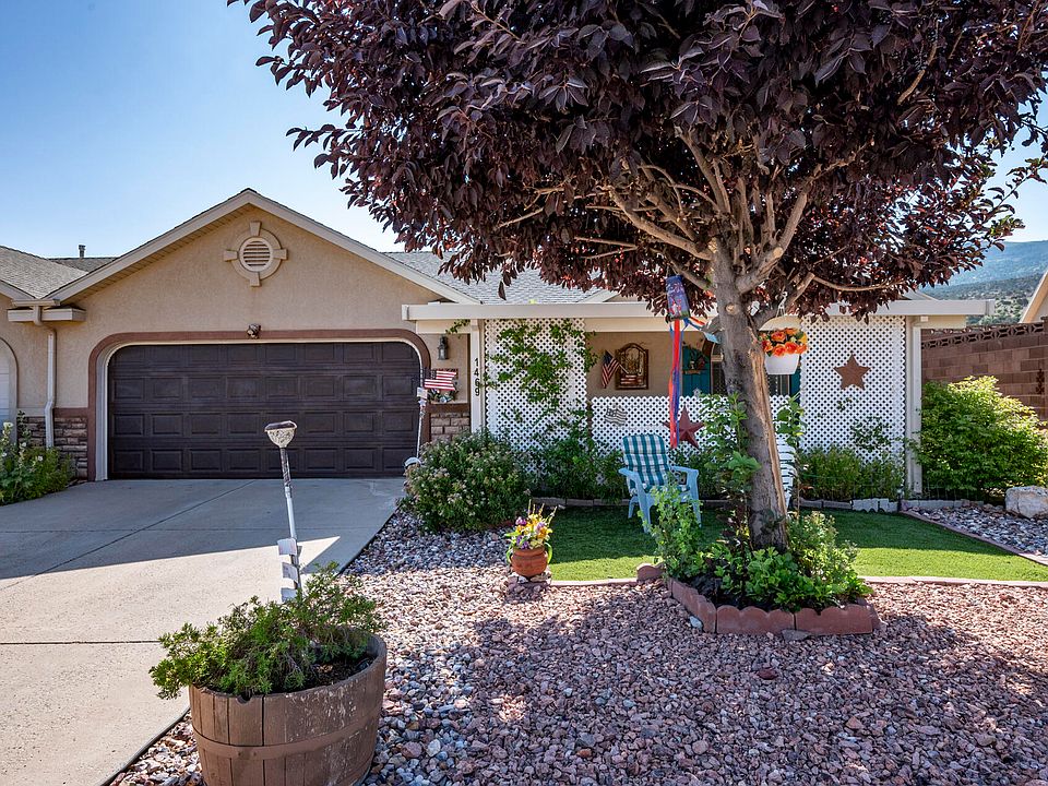 Charming retreat with custom upgrades and breathtaking views! Nestled at the base of the mountains, this upgraded and beautiful home offers a unique blend of comfort and style. Unlike any other, this property boasts custom-painted garage doors that set it apart from the rest. Step onto the covered porch, complete with a skylight, and enjoy the serene surroundings. The covered back patio provides unbeatable views, making it the perfect spot for relaxation and outdoor entertaining. Inside, you'll find low-maintenance LVP floors and sleek stainless-steel appliances that enhance the modern aesthetic of the home. The fenced and beautifully landscaped yard is meticulously maintained, offering a picturesque setting for outdoor activities. Additionally, a nice shed is available for all your garden tools and storage needs. Don't miss the opportunity to own this one-of-a-kind home with its unique features and stunning mountain views. Schedule a viewing today and experience the charm and elegance of this exceptional property!