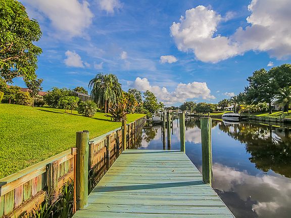 Welcome to your Waterfront concrete block screened pool and spa home with 100 ft. seawall, 31 ft. dock & 9K lb. lift with no fixed bridges and ocean access. Entertaining is a breeze with sought after open concept that is cozy for the family and big enough for company too! Sliding glass doors lead to an airy, covered lanai encompassing the irresistible screened in 32x16 Pool and Jacuzzi. Master en-suite with separate screened in patio for your own private retreat. Two additional ample sized bedrooms and bath. Peace of mind can be found with High & Dry Elevation. NO Flood insurance required, hurricane panels, and 500 gallon buried propane tank for whole house generator. NO HOA fees and bring all of your toys! A+ Rated Palm City School District. Exceptional value you shouldn't miss. Call Today!