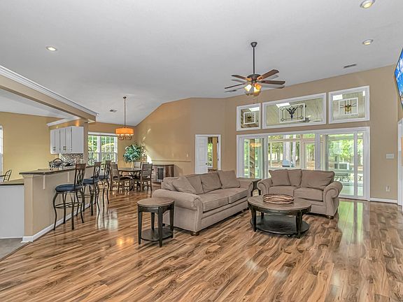 This gorgeous home situated in the heart of Murrells Inlet's desirable golf course community. This single-level open floor plan featuring 12" ceilings 3 bed-2 bath home with an office or can used as a 4th bedroom with a custom built murphy bed. The kitchen is large, updated, with under cabinet lighting, the sunroom has skylights that offers complete backyard privacy, backing up to a large pond nestled on a cul-de-sac. The Indigo Creek Golf Clubs 15th hole and 16th tee box. This home is mere minutes from the renowned Marsh Walk, brimming with delightful restaurants, bars, and shops. You're also close to Surfside and Garden City Beaches, Litchfield/Pawleys Island beaches, and just 15 minutes south of Myrtle Beach. It's a must-see!