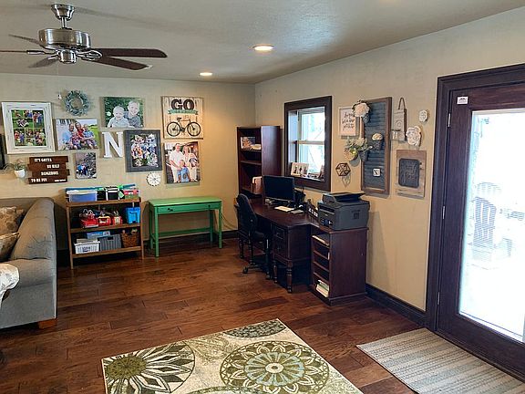 - Ceiling Fan(s), Laundry Room, Window Treatment, Stained Wood, Combo Woodwork