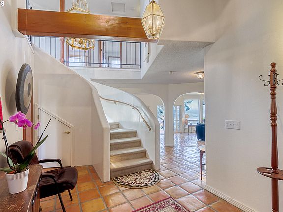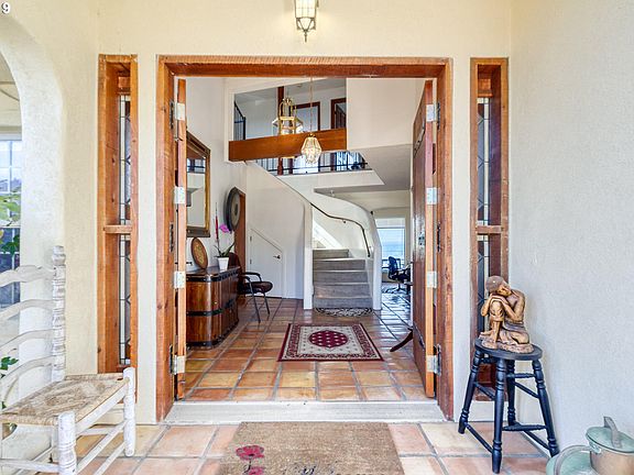 OCEANFRONT DREAM! Turnkey Mediterranean-style beach villa boasting 5bd, 3.25bth, den, 2 huge decks. Step right onto Brookings longest sandy beach - walk clear to Cali. Picture windows show ocean panoramas from most every room. Enjoy fiery sunsets, whales, seals, eagles and crashing waves. Wood burning fireplace. Private cul-de-sac close to town, 30 minutes to Crescent City airport (daily flights to Oakland Internationl). Life is a BEACH!