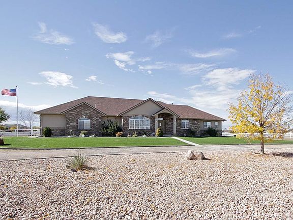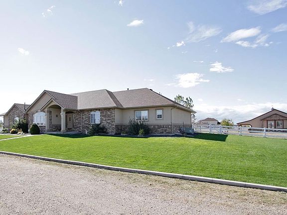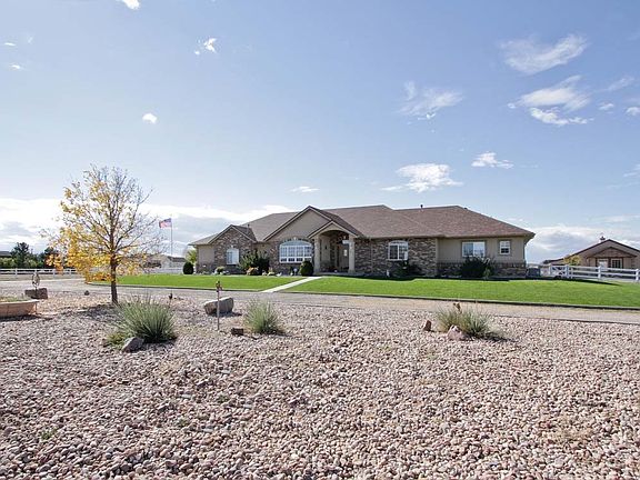 Breathtaking ranch on almost 2.5 acres of land! Zoned for horses, this property offers a large barn, covered patio and front porch, new septic system w/leach field, new roof, new gutters, front and back sprinklers and a large, oversized, heated 3 car garage. The interior is just as gorgeous featuring arched entries, fire sprinkler system, hardwood floors, upgraded carpet and pre-wiring for surround sound. The gourmet kitchen includes double ovens, granite counters, custom tile backsplash, stainless steel appliances, large center island with bar seating, walk-in pantry, eating space with bay windows and a built in command center. The family room offers a gas fireplace, built-in entertainment area and opens to the kitchen. The master bedroom offers private access to the backyard and a 5pc bath with granite counters, custom tile and walk-in closet. The fully finished basement features a large rec room and wet bar for entertaining, 2 add'l beds and a full Jack and Jill bath. RV parking also available!