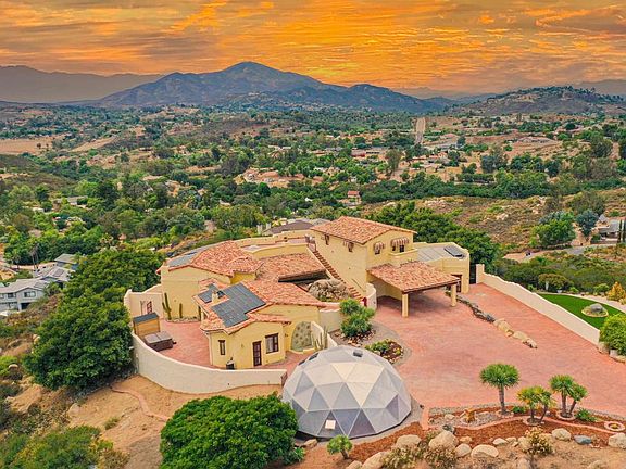 Welcome to your custom-built Santa Fe style retreat in the heart of Jamul! This charming home is a harmonious blend of rustic elegance and modern convenience, offering a unique experience that is sure to capture your heart. Perched atop a gentle slope, this home affords you panoramic country views that stretch as far as the eye can see. You'll revel in the tranquility of this setting while being pleasantly surprised that you're just 28 minutes from the bustling San Diego International Airport and a mere 12 minutes from convenient shopping. It's the perfect balance of serenity and accessibility. As you approach, you'll be greeted by a welcoming courtyard, setting the stage for what lies within. Inside, the custom hand-painted tiles, rustic accents, and exquisite Saltillo tile flooring create an ambiance that's truly one-of-a-kind. The spacious living room boasts high ceilings and a custom beamed design, exuding warmth and comfort. The fireplace, nestled in a built-in seating area, is the heart of this home—a place to gather, relax, and create cherished memories. The kitchen is a culinary paradise with ample cabinetry, sleek tile countertops, stainless steel appliances, and a unique fireplace that adds character and charm. A formal dining room beckons for shared meals, while the generously sized family room is your oasis for unwinding. Your primary suite is a sanctuary with patio access, another inviting fireplace, a walk-in closet, and an ensuite that's simply enchanting. The double vanity and distinctive mosaic stone accents that adorn the tub and shower create a spa-like experience. Now, let's talk about the views. This home takes full advantage of its breathtaking surroundings. On clear days, you'll be treated to spectacular views of the Pacific Ocean. The rooftop deck and the backyard patio offer the most mesmerizing settings to enjoy captivating sunsets, making every evening a special occasion. But there's more to this property! Two separate bonus living spaces await your personal touch. The 600 sq. ft. detached space on the upper level features its own expansive deck, entryway, powder room, and three flex rooms currently used as offices. Additionally, a 500 sq. ft. studio space on the main level with an attached half bathroom offers endless possibilities, from a home business to a guest suite to a gym or even a creative studio. Additional features include a laundry room, a hot tub, an owned solar system, and an attached 2-car garage. You'll also enjoy the peace of mind that comes with a whole-house water filtration system. And if relaxation is what you seek, a newly constructed sauna awaits your indulgence. Embrace the allure of Spanish Mediterranean charm, intricate detailing, and the remarkable panoramic views that this Jamul residence has to offer. Don't miss this extraordinary opportunity to make this your home, where you can revel in a lifestyle of beauty, tranquility, and accessibility.