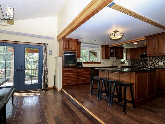 Welcome to beautiful 14695 Spring Hill Road in Frenchtown! This immaculate 4 bedroom 3 bath home on 5 acres has been completely remodeled and has Mill Creek frontage and irrigation rights! Large updated kitchen with stainless steel appliances, cherry wood cabinets, extra conventional oven, granite counter tops tons of counter space and pull out drawers. Built in pantry, wine rack, and nice wood floors throughout. Living room offers wood burning stove, ceiling fans, natural lighting. Upstairs master bedroom is very spacious with an exit door out to the patio for taking in your mountain views. Beautiful master bathroom has separate tub and shower.The downstairs is a fully finished walk out basement with carpet throughout, good size family room 2 bedrooms and a bathroom.