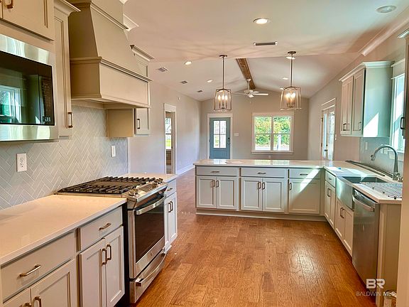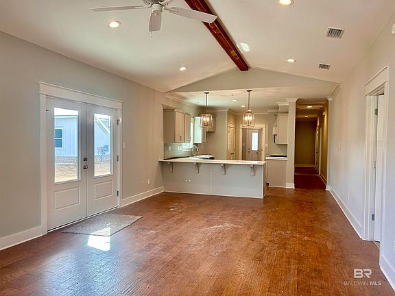From thoughtfully designed homes that merge beautiful interiors and peaceful outdoor living, youare sure to fall in love with Magnolia Cottages. The Millie floor plan maximizes the volume ofspace in the center of the home-kitchen, dining area, and living room- to offer more livability in anefficient design, featuring all of the upscale amenities- vaulted ceiling in living room and primarybedroom, wood flooring, maniblock water system, quartz counter tops, designer mirrors in baths,oversized soaking tub with separate shower in primary bath, GE stainless steel appliances,tankless water heater and so much more!Thoughtful indoor-outdoor connectivity expands your entertaining choices.The exterior features 4-sided concrete board and batten with a brick skirt, metal roof, front porch,upgraded landscape package including irrigation system, rear entry garage accessed fromprivate drive, and Gold Fortified Construction.Don’t miss out! Only 12 homes will be available in this boutique community located in the heart ofMagnolia Springs. Buyer to verify all information during due diligence.