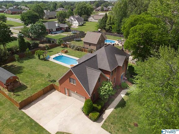 VACATION IN YOUR OWN BACKYARD at this updated home just minutes from Madison and Athens. You'll love this all brick, 3,200 sf home that offers new floors and paint, kitchen cabinets and granite, appliances, carpet, and a luxury master bath you're going to love. Updated throughout with many custom touches like crown molding and hardwood floors found in much more expensive homes. There are 2 staircases that lead upstairs to 4 bedrooms, an office, and a bonus room with built-ins. There's a formal dining room, breakfast nook, and large laundry room. The outside shines even brighter with a shimmering pool with new liner, a large outbuilding that is heated and cooled, deck w/Sunsetter Awning.