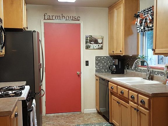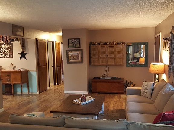 Wonderfully updated home features a remodeled kitchen with gas stove/oven glass tile back-splash, newer counters & refrigerator, dining room with sliding glass door to private back deck & cross-fenced yard, living room with new wood floors with wood stove on a tile hearth. Owner just finished a full bathroom remodel with custom tile shower surround, vanity & more plus all new carpeting installed in the bedrooms ready for you to bring in your furniture! Seller just had the heat & air and duct work checked, some fresh interior paint and this home is Move In Ready!!