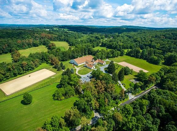 Private and serene, Grace Hill Farm is one of Millbrook's preeminent equestrian estates featuring wondrous vistas, picturesque ponds, lovely gardens, mature orchards and fragrant woodland laced with miles of riding and hiking trails. Elegant and immensely inviting, the classic English country house takes full advantage of the breathtaking setting with tall windows and surrounding terraces that showcase the blissful prospects that reach across the Hudson Valley to the majestic Catskill Mountains. A stunning pool, pool house, carriage house and substantial outbuildings also share the verdant setting providing ample facilities for guests and staff alike. For the equestrian, there is a newly added 14-stall Barn, a true showplace fitted with state-of-the-art systems, an indoor ring and a memorable viewing/entertaining space designed for competitions and large gatherings. A dressage ring, outdoor ring, Grand Prix field and another 5-stall barn are other stand-out features of this expansive and meticulously-maintained equestrian estate cloistered in prized Millbrook estate, just 90 miles from New York City.