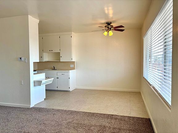 This spacious one-bedroom, one-bath downstairs apartment has been fully renovated with new paint, tile flooring, carpet, blinds, hardware, fixtures, and a newer gas stove and refrigerator. Includes one carport parking space with a small storage area.