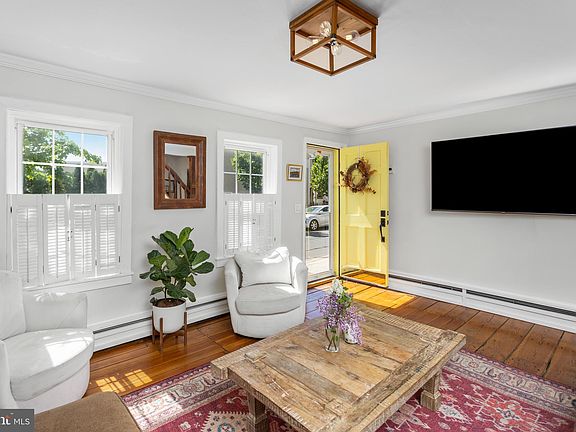 Discover this beautifully updated 4-bedroom, 1.5-bath home in Bordentown City, where modern upgrades blend seamlessly with old-world charm. The current owners have thoughtfully renovated and restored every inch, combining stylish updates with custom carpentry that honors the home’s historical character. Step into the sunlit living room featuring refinished wide plank pumpkin pine floors and neutral paint throughout. Attention to detail is evident, from the custom baseboard heat covers to the black walnut beams and accents on the exposed staircase. Designed for entertaining, the main level flows effortlessly from the cozy sitting room—complete with a gas fireplace, quartzite surrounded, and built-in shelving—to the open dining area and kitchen. The hardwood floors continue here, complementing a chic half bath and adding warmth to the space. The kitchen is a showstopper, outfitted with custom white shaker cabinetry by Cabinets by Amy and Lauren of Bordentown City, gorgeous quartzite countertops, a cast iron farmhouse sink, a tile backsplash, new stainless steel appliances, and an oversized island with seating for four. From here, step outside to a private deck, lattice pergola, and a stone patio—perfect for warm-weather gatherings. Upstairs, you'll find four bedrooms, each equipped with mini splits for both air conditioning and heat comfort. The full bathroom has been updated with a new tub and Bath Fitter surround, and the second-floor laundry adds convenience. Refinished original pumpkin pine floors continue throughout this entire level, preserving the home’s timeless appeal. Outside, the freshly painted exterior is complemented by brand new brick entry steps with a cast iron railing to match the historical design of the home and new storm door. The backyard feels like a secret garden, beautifully landscaped, filled with flowers during Spring, Summer, and Fall and enclosed with a new 6-foot fence and privacy lattice. A private driveway with space for three cars—a rare find in Bordentown City—adds even more value. Centrally located in the heart of Bordentown City just steps from shops, restaurants, and community events, this turnkey home is ready for you to move in and enjoy.