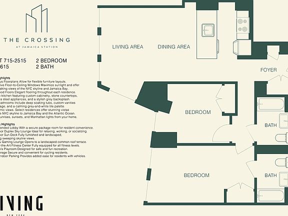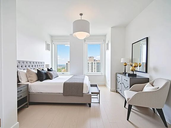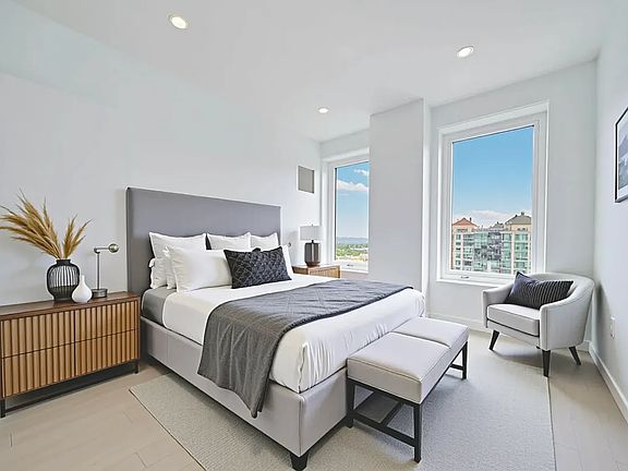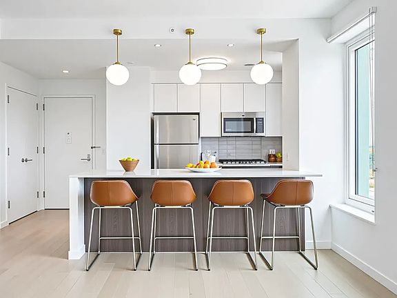 Expansive Floor-to-Ceiling Windows Maximize sunlight and offer breathtaking views of the NYC skyline and Jamaica Bay.