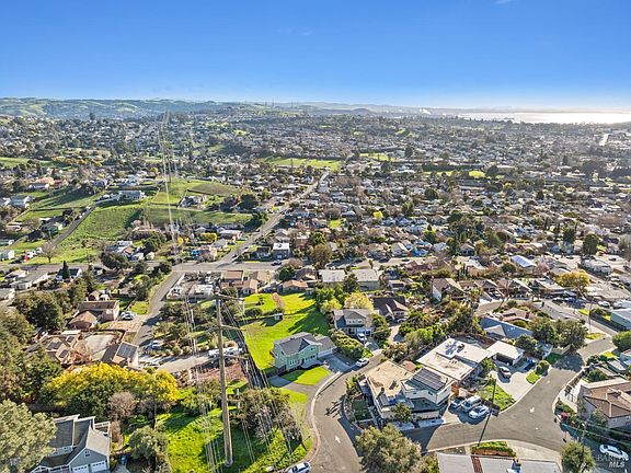 Must see this SF Bay panoramic view home! .Back on market, no fault of property, buyer could not perform. .44 ACRE LOT affords room to build up to 2 more homes in the back portion, or other development ideas? Extensive off-street parking, RV access and parking. Interior decorator touches and features, designer blinds, and dual pane sliding glass doors with interior blinds installed inside the glass. Immaculate and ready for new owner. Home of a licensed general contractor, it is well-designed, all work top notch! Located at the top of a view knoll on a peaceful, custom, view cul-de-sac. Upper level has a private, large primary view suite, as well as 2 more bedrooms and full bathroom. Main level living areas all have panoramic views. Lower third level contains a large family room/office and a 4th bedroom, with access to outside and possibly an option to convert to in-law unit. Easy access to Interstate for commuters in all directions, easy drive to SF Ferry and Napa/Sonoma wine country region.
