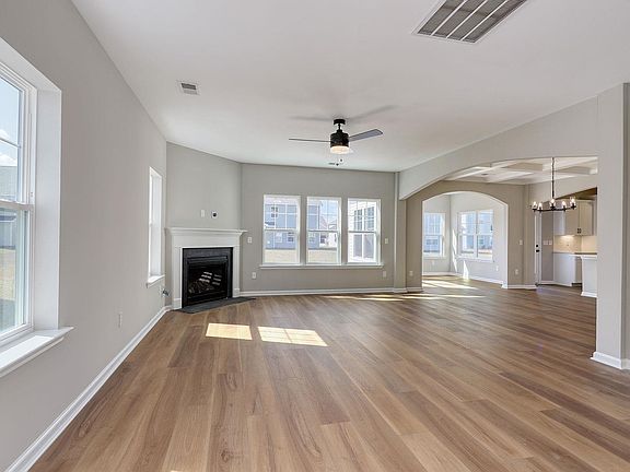 Must see layout!! The Warwick is a stunning showstopper with a gorgeous gourmet kitchen, 5 bedrooms, 4 full baths, and sunroom, dining room with coffered ceiling, fireplace, black fixtures and finishes, and more! Come see the model home. Our 1-2-10 year warranty will give you peace of mind. Superior energy efficient construction includes 15 SEER HVAC 2 units, and R-38 ceiling insulation. Interior photos shown are of a furnished model. Features, colors, and options are subject to change without notice.