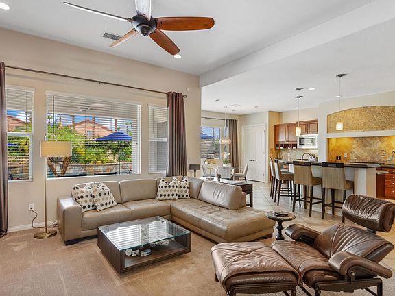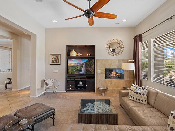 PRICE REDUCTION - SELLER IS VERY MOTIVATED. BRING US AN OFFER! This amazing home features a main house with four bedrooms, three full baths, and a powder room. The primary suite is spacious, boasting a large bath and walk-in closets, while two of the bedrooms share a jack & jill bath. The 4th bedroom has an ensuite bath. Additionally, there is a detached casita with a full bath, providing versatility as a guest space, home office, or potential rental. Inside, the home boasts a well-designed floor plan, with ample room for entertaining guests. High ceilings and recessed lighting throughout contribute to a modern and open atmosphere. The kitchen is equipped with stainless steel appliances, a large pantry, and a convenient breakfast bar. Outside, the property offers a delightful outdoor area, complete with a sparkling saltwater pool and spa featuring a water feature. There is also a fire pit and a built-in BBQ, ideal for outdoor gatherings. The beautiful desert landscaping adds to the overall appeal of the exterior. Some additional features include a leased solar system for energy efficiency, along with recent upgrades such as 2 new A/C units installed in 2021, electrical heat pumps, and a new pool pump. Situated in a gated community, the property offers added security and privacy. The monthly HOA dues are low, making it an affordable choice for a gated community. Moreover, the home's central location provides easy access to various amenities and services.