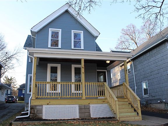 2,000+ SQFT SINGLE FAMILY IN THE SOUTH WEDGE. This freshly painted 3 bed, 2 full bath with an at Home Office is move-in ready. Main level living includes a NEW kitchen featuring granite countertops, new stainless steel appliances, cabinets, disposal, lighting and flooring. New LVT flooring on the main level; dining room, living room, office, and the first floor laundry room. Main level full bath features a new tiled shower, vanity, lighting, toilet, ceiling fan and flooring. Second level has refinished hardwood floors and new paint in all 3 bedrooms. The 2nd full bathroom has new tiled shower, vanity, lighting, toilet, ceiling fan and LVT flooring. Tons of storage in the upstairs bathroom’s built-in closets. Home is upgraded- NEW AC unit (2022), NEW vinyl siding (2022), NEW gutters (2022) and NEW glass block windows (2022), NEW tear off roof (2022). NEW front porch (2022) and side porch (2022) completely rebuilt. Plenty of off-street parking in the sealed (2022) driveway, parking for 4+ vehicles. Walkable to Highland Park, Highland Hospital and South Ave.