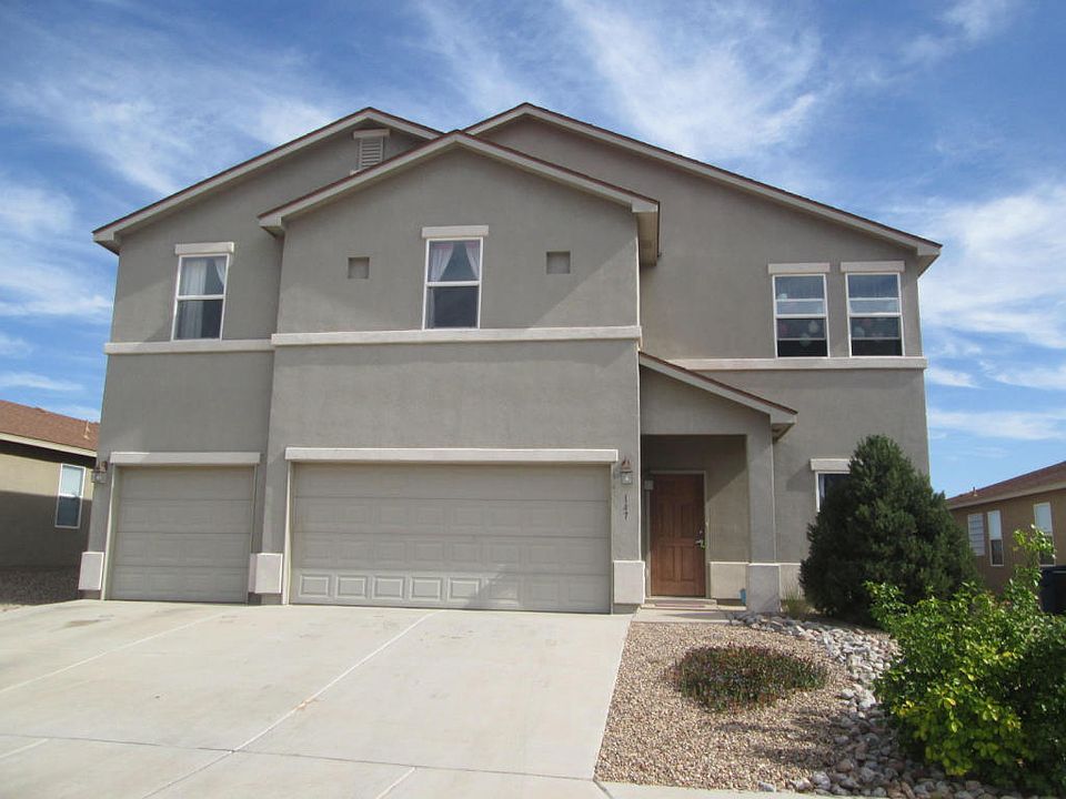Don't miss this wonderful Centex home! Plenty of elbow room for your family with 4 bedrooms & 2-1/2 bths. Fabulous kithen with lots of cabinets, ceramic tile backsplash & Corian countertops. 2 living areas include a playroom upstairs. Master suite has a 12x16 balcony with awesome views. Master bath includes a garden tub & separate shower. Laminate & ceramic tile throughout the home with carpet only in Master Suite. Keep cool with 2 units refrigerated air. Home is on a premium lot with views. Walled backyard has 2 patio areas, grass & built-up planter boxes. Convenient to Railrunner, Walmart, movies & easy access to I-25. This planned community with parks, landscaped open spaces, views & walking/biking trails is a great place to call Home!