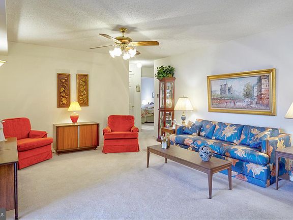 Welcome to this FIRST FLOOR, 2 bedroom, 2 FULL bath condo in a prime location with easy access to the parking lot. The building is on the walking path circling the lake and across the parking lot from the clubhouse, fitness center and pool. The master bedroom has a walk-in closet and a private bath with stall shower. The open floor plan offers a large living room, dinette and a sunroom / den featuring storage closet and 3 sliding doors drenching the unit with natural light. The kitchen highlights breakfast bar, gas cooking, built-in microwave and dishwasher. An attached laundry room with newer washer and dryer has pantry storage. This unit offers additional storage with a large closet in the dining room and an added closet in the 2nd bedroom. HVAC replaced in 2019. The community also offers tennis and basketball courts. Conveniently located nearby shopping, major highways, Philadelphia and the Jersey shore