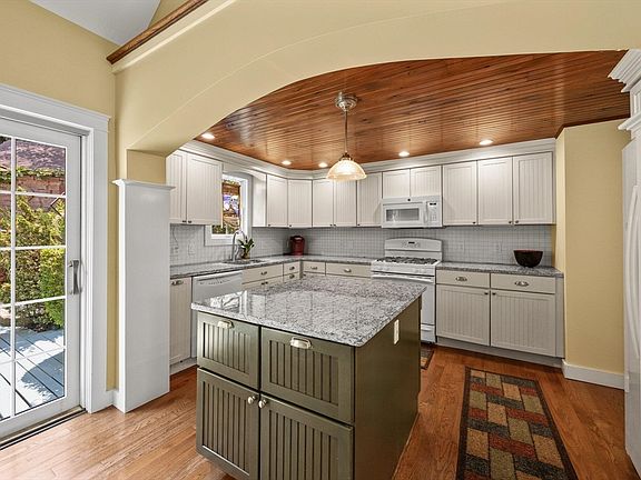 Welcome to this sun-filled West End townhome, offering over 1,500 sq. ft. of meticulously designed living space. Rebuilt in 2006, this home features expansive open areas and versatile spaces ideal for both you and your guests. Enter from a sun-drenched deck into a welcoming foyer. The knotty pine guest area includes a full bath, walk-in closet, and sitting area. The main living space boasts a living room, office with barn door, and dining room with vaulted ceilings and a propane fireplace. The kitchen offers ample counter space, bead-board cabinetry, and a large island. Upstairs, the primary suite fits a king-sized bed, has a walk-in closet, ensuite bathroom, and in-unit washer and dryer. The stunning, fully enclosed, multi-tiered outdoor living space features clipped hedges and lush perennials. Additional amenities include wood floors, two-car parking, an outdoor shower, 2.5 baths, and a large storage shed. Enjoy modern comforts in a serene setting.