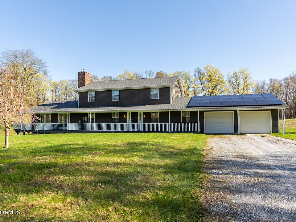 This sprawling home is set back from the main rd offering the perfect blend of privacy and convenience. Step out onto the large front porch and enjoy the peaceful setting with a small pond. There is a large kitchen with plenty of granite counter space, ideal for preparing your favorite meal. The floor to ceiling fireplace is the focal point of the great room. The primary en-suite bedroom is situated on the 2cnd floor with its own fireplace. Two additional bedrooms and a full bath complete the 2cnd floor. Still need more space? check out the 3 rooms off the great room perfect for a private office or hobby room. There is 7 acres of land to enjoy including a separate garage. Additional features, 2 car garage, close to the rail trail, huge basement, and central air on the first floor.