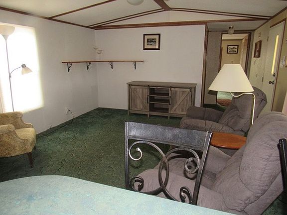 Beautiful Long Range Mountain Views year round make this affordable, well maintianed mobile home exceptional. Located in a small park of 10 homes just outside of town. New Fridge, Microwave, dishwasher and 2 year old washer and dryer as well as being sold furnished make it move in ready immediately. Home has split floor plan, fenced in yard and room for a garden. This is a property not found often don't miss it. Mobile is being sold as personal property, is on rented lot, there is no real esate in the sale. Cash offers only