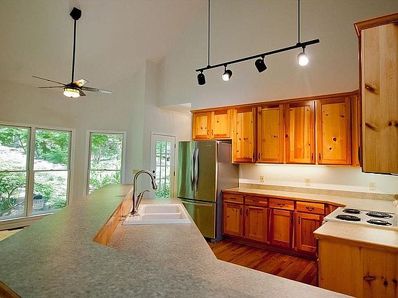 Move in Ready Main floor living on over 2 acres, fenced front and back yards planted w/ hydrangea, Japanese maples, rhododendron and azalea. Gas fire pit located overlooking mountain valley. Covered porches front and screen porch in back. The entire interior has been freshly painted and offers a large great rm w/ a soaring vaulted ceiling, fireplace and dining area as well as open kitchen, breakfast area and large laundry rm. The lower level offers a second living rm, gas fireplace, bonus rm, huge closet and full bath (not reflected in tax records) 2 car garage plus golf cart garage/wkshp. Level parking concrete parking is located in back of home. New roof and outside paint job 2019. New heat and air installed Dec 2020.