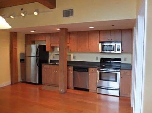 Schedule your appointment to come and see the ONLY unit available in the Lofts at SoCo. It is a wonderful 2 bed 2 bath unit on the third floor with exposed beams and brick wall. This unit comes fully applianced with an added washer and dryer in unit as well. Come and fall in love with this well lit unit with an open floor plan. Assigned parking for 1 car in a gated lot. This condo is located in a convenient location just seconds away from the commuter rail and public transportation. This is a smoke free building and dogs are NOT allowed, cats however are ok. These units do NOT stay on the market long so make sure you come and see this quick before its gone. (No FHA loans)