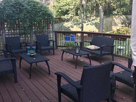 Park-like fenced/shady back yard w/ supersized, multi-level deck. Spacious family room upstairs. 5 bedrooms plus an office, formal dining room, eat-in kitchen & wood burning fireplace. Come sit on the porch swing of your new home! $5k decorator allowance offered by sellers to buyers that enter into a contract before May 31, 2018.