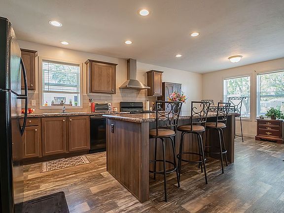 This 2020 double-wide manufactured home is located in Oak Tree Village. The beautiful kitchen has plenty of cabinets, a center island, and black appliances. Three bedrooms and two bathrooms are part of this complete package. Laundry area and shed allows for extra storage. This community has an in-ground pool and a playground. Listed by Carol Vieceli, New Chapter Real Estate, 219-299-3357. There is a land lease of approximately $720.