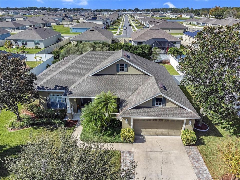 Welcome to the serene and exclusive Estates of Auburndale, a gated community surrounded by lush, mature hedges and a lifestyle of elegance, comfort and convenience. Low HOA and NO CDD! As you drive through this remarkable community, you'll notice the well-maintained homes that create an ambiance of beauty and elegance where residents invest in their homes. Now, the opportunity awaits you to own a stunning 3-bedroom, 2-bathroom home with a flexible space that can be transformed into a den, office, or whatever suits your needs. This home boasts 2018 square feet of living space and a total of 2847 square feet situated on a generous lot of a quarter acre! A brand new roof completed November 2023 to eliminate all your worries of a HUGE expense. Admire the updated pavers that were installed on each side of the driveway ensuring easy access to and from your vehicle while adding a touch of beauty to your property presence. As you walk to the front door this home welcomes you with the well -manicured yard, lush green grass and perfectly groomed hedges and pre-matured trees that present you to an inviting front porch with a sitting area. Step on in to the open floor plan with spectacular laminate flooring that gleams as it basks in the natural sunlight that streams through the exceptional sliding glass doors. The living room serves as the heart of the home, with the kitchen and dining room situated off of it, making family gathering or entertaining a breeze with cooking and socializing together. A chefs kitchen awaits you with beautiful JettaStone countertops with plenty of space to prep your meals, a stainless steel farm sink, stylish backsplash, plenty of cabinetry for storage, and a breathtaking kitchen nook, perfect for morning gatherings before you start your day . The owners' suite is 13x19 featuring Berber carpet, a beautiful tray ceiling, access to the screened in lanai through the sliding glass doors and a master bathroom that is sure to capture your heart with its deep garden tub, perfect for hot bubble baths to unwind and rejuvenate. Dual sinks adding convenience to your morning or evening routine and a nice walk in closet. You'll find the other 2 bedrooms and the office right off the living room offering family and guests their own space. Bedroom 2 and 3 have Berber carpet, ceiling fans and access to the second bathroom that has a spacious linen closet and direct access to the screened in lanai. The screened in lanai overlooks the backyard, a space to enjoy the outdoors, rain or shine. The backyard itself is an oasis with thick, healthy grass and a fully fenced in yard, providing both privacy and security. Updated pavers ensure easy access to the side of the house, allowing gate access. There's plenty of room to install a future pool, or simply enjoy the open space for entertaining and recreational activities. Ride your bike or take a stroll to the community pool which has a kiddie and adult pool, playground, basketball courts and a turtle habitat that is exceptional to see. Minutes from I-4 and Polk Parkway making commutes friendly. This is more than just a house; it's an opportunity to become a part of a thriving, vibrant community where pride of ownership and a warm welcoming spirit are the cornerstones of everyday life. Don't miss the chance to be a part of this exceptional community, make this house your HOME today.