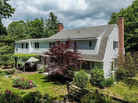 Close to town, located on a residential cul de sac, in a country-like setting, this handsome colonial gambrel home offers a spacious interior, with numerous upgrades, including a fabulous kitchen renovation! Features include 2 fireplaces, a den, study, 4 bedrooms, 3 full baths, media room (over 2-car garage), dining and living room, mahogany, oak and tile floors and numerous built in bookcases. The inviting backyard is accessed from the kitchen leading to a vine covered pergola and stone patio, perfect for outdoor dining. The large lot is thoughtfully landscaped and enhanced by a delightful variety of flowering trees and shrubs with views overlooking the peaceful private Meadow Corp land, owned by the neighboring shareholders, in Current Use, appreciated by neighbors for walking and cross-country skiing! See packet for more information, including Meadow Corp Share offer.