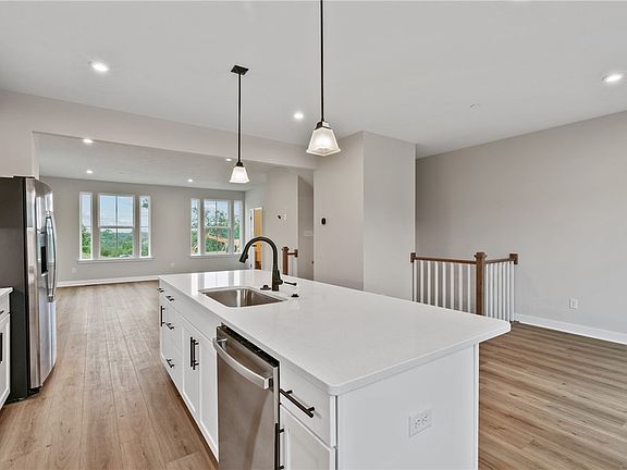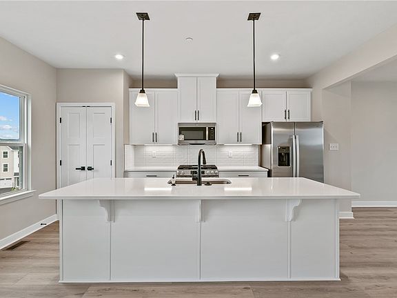 Beautiful new construction townhome in highly desirable location with luxury features such as: END UNIT with additional side windows, finished basement rec room with walkout condition to backyard, hardwood stairs throughout, gourmet kitchen with island with quartz countertops, white cabinetry throughout, stainless steel appliances, luxury vinyl plank flooring, Craftsman black matte finishes and trim throughout, owner's bathroom with ceramic tile shower