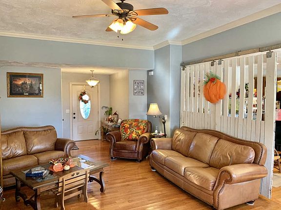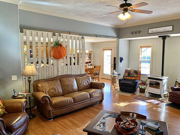 Beautiful brick and vinyl sided home on 3+ acres with a pond just a few minutes from town! With more than 2,000 sq feet of living space this home has 3 nice sized bedrooms, 2 large living areas with 2 1/2 baths. Hardwood floors throughout the main living areas, nice sized kitchen with stand up pantry, stainless steel appliances and dining area. The living room has 10 foot ceilings and is open to the dining and kitchen area making this a great home for family gatherings. There is a huge second living space perfect for another family room or 4th bedroom with an attached 1/2 bath. The master suite has tray ceilings, large on suite bath with double closets, linen closet and handicapped accessible tub/shower. Out back is a brand new deck, privacy fenced yard and great place to watch the sunset.
