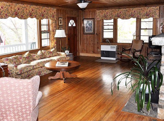 IN-TOWN VINTAGE HOME with lots of history. Built as a summer home of Senator Joe E. Blythe of Charlotte in 1937, this stone and wood home has the charm, character and location buyers yearn for. The main level has dominant stone fireplace and wood floors, walls and ceilings. The main floor master boasts a walk-in closet and fireplace. The covered porches are wide and private, great for entertaining and viewing the mountains. In addition, there is a two bedroom, one bath apartment above garage not included in the square footage, bedroom or bath.