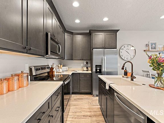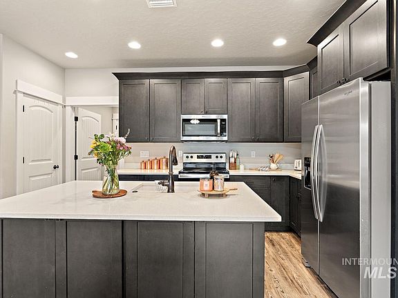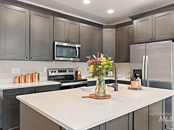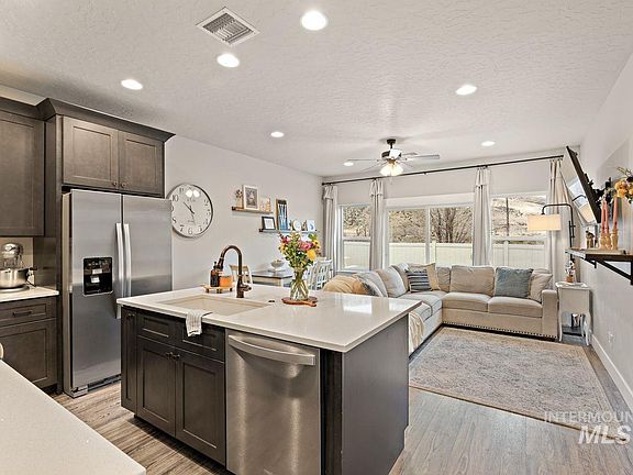 Welcome home to this charming single level oasis in Horseshoe Bend that shows like NEW! This 3 bedroom 2 bath home offers a functional living space with high ceilings. Entertainers will love the open concept and family-style kitchen. Beautiful entry way with ample storage throughout, Quartz Island top and convenient dining area. The master bedroom has dual vanities and a walk in closet. Enjoy the private backyard with no behind neighbors, clear mountain views and deer walking by at times. Close proximity to the Payette River, Mill Pond and Duff Pond!