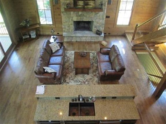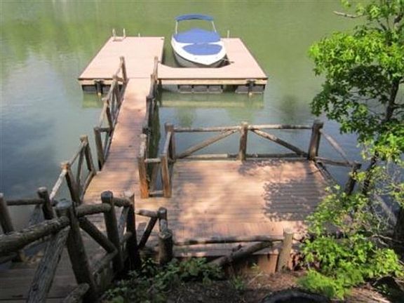 Look out over your backyard directly at the beautiful view of Dobson's Knob. Stroll past your fire pit and continue on the short path to your dock, already built on this waterfront paradise. This Energystar certified home shines with board and batten, featherboard, and stone exterior finishes. The inside includes a soaring stone fireplaces, milled pine wall finishes, and plenty of room for your family or more to spread out. At 3.65 acres, it doesn't get much more private and yet it is within walking distance of Camp Lake James, the neighborhoods Lakeside Adventure Center. A membership to that amenity conveys with purchase.