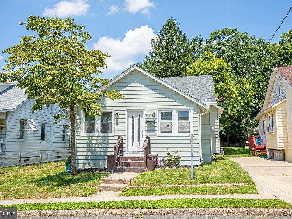 Charming Cape Cod with upgrades galore! A large inclosed porch greets you as you enter this sweet home. The porch has all replacement windows and would be perfect for a sunny playroom, home office or just a chill space to relax. Dark hardwood floors and fresh neutral paint throughout the entire first floor !!! There is a spacious living room with a large doorway to the formal dining room, creating an open flow to the home. The primary full bathroom is conveniently located on the first floor just off the hallway and dining room. The primary bath has a large vanity and a new oversized rectangular sink, subway tiles in the shower and upgraded lighting. In the kitchen you will find stone countertops, custom cabinetry and tile work. Stainless appliances complete the look. The primary bedroom has plenty of space as well as a walk in closet for storage. The kitchen has a door that leads to the oversized backyard, perfect for a play structure, pool or garden. The basement is clean and perfect for storage or extra living space, the washer & dryer are located in the basement. The yard is so large it provides space for entertaining as well as family recreation. There is an additional bedroom on the first floor as well as two more bedrooms on the second floor. This home provides easy access to the NJ turnpike, The Black Horse Pike and 295. Shopping is just a few blocks away.
