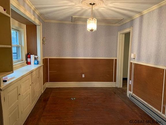 Calling all Handymen! This is a great house that needs a little TLC! SOLD AS IS. Great owner occupy or rental. House is located in the City of Gloversville, close to the public library, the county building, eateries, and other small shops and convenience stores. New toilet and kitchen floor, also new floor in mudroom off carport. This home is situated on a large corner lot. Carport 216 sq. ft. directly off back door for ease of entry. Entry from carport into a mud room area, that leads directly to the kitchen. Dining room and living room area, as well as a bedroom and full bath and an additional sitting area on the first floor. The front door leads into an enclosed front porch. The upstairs has an additional bedroom. There is a partial basement and an attic hatch.