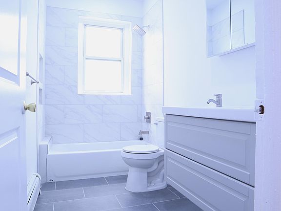 This fully renovated unit features 3 large bedrooms with ample closet space accompanied with tons of natural sunlight and a great layout. With a formal living room, this unit is the perfect home. A new bathroom features high-end finishes along with a large eat-in kitchen that provides a fresh feel. Feel at home with a street entrance and a private entrance in the back along with a private green space and exclusive parking lot conveniently located right next to your unit. At the Elizabethport, shopping, entertainment, and transportation is minutes away with a new ferry offering a 20 minute trip to NYC. At the helm of it all, this building comes with great tenants forming a great community and top notch security throughout. Tenant pays Electric and Gas, Owner pays Hot Water. There is an additional parking fee that is negotiable. Landlords are great with communication and only ask for NO pets at all and a great attitude to make a greater community. Please note that background checks are required.