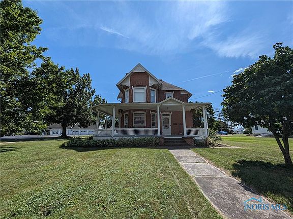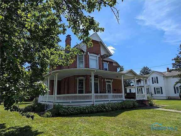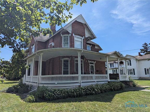 Victorian beauty featuring 4-5 bedrooms & a delightful wrap-around porch. Step inside to a formal 2 story foyer adorned w/exquisite beveled glass windows, showcasing the original woodwork & hardwood flooring. Kitchen boasts cherry cabinetry & a unique tin ceiling, while the DR impresses w/its wood ceiling & cherry beams. Enjoy cozy evenings in the LR or MB, both featuring dec fireplaces & stained glass windows. W/2 baths & upstairs kitchen currently serving as a playroom, this home offers versatility or potential duplex living. Large lot includes a 2.5 car garage w/extra finished heated room.